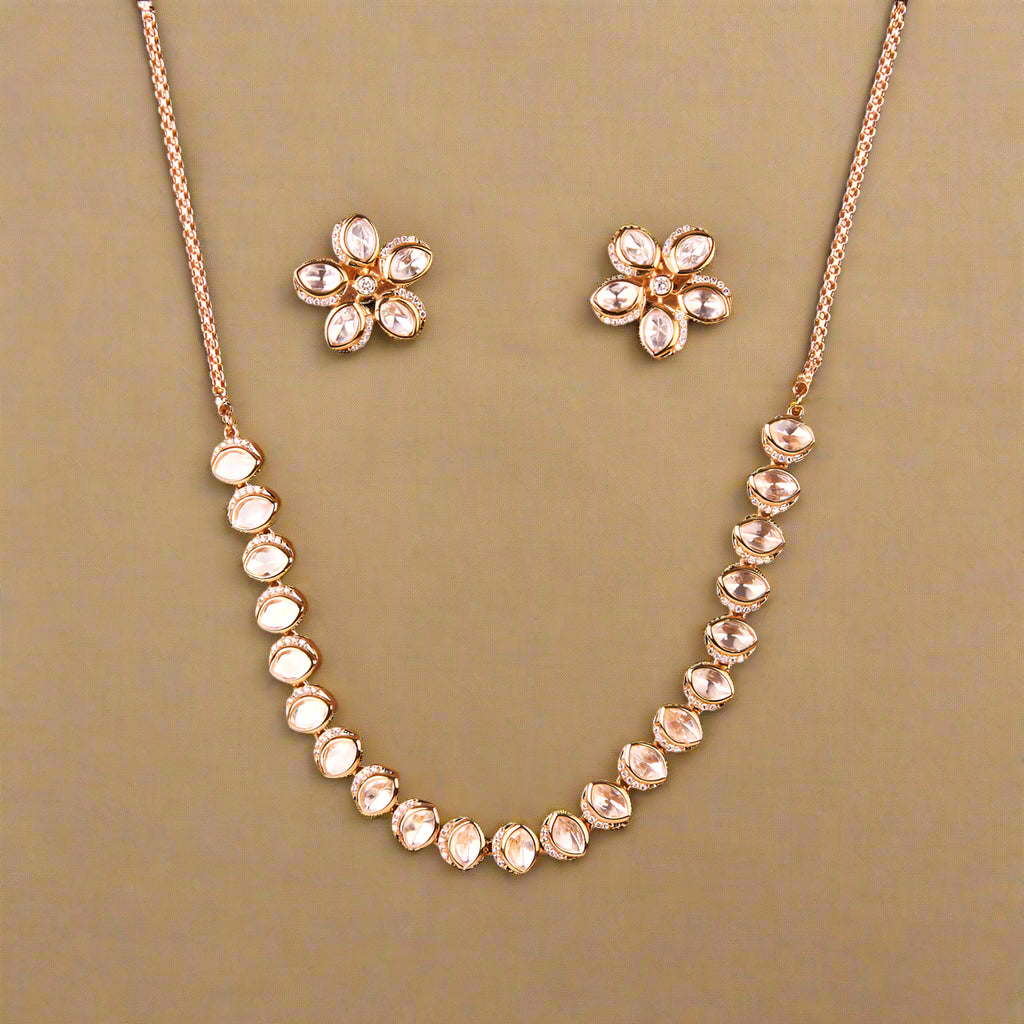 Kundan Delicate Necklace Set With Gold Mehndi Plating