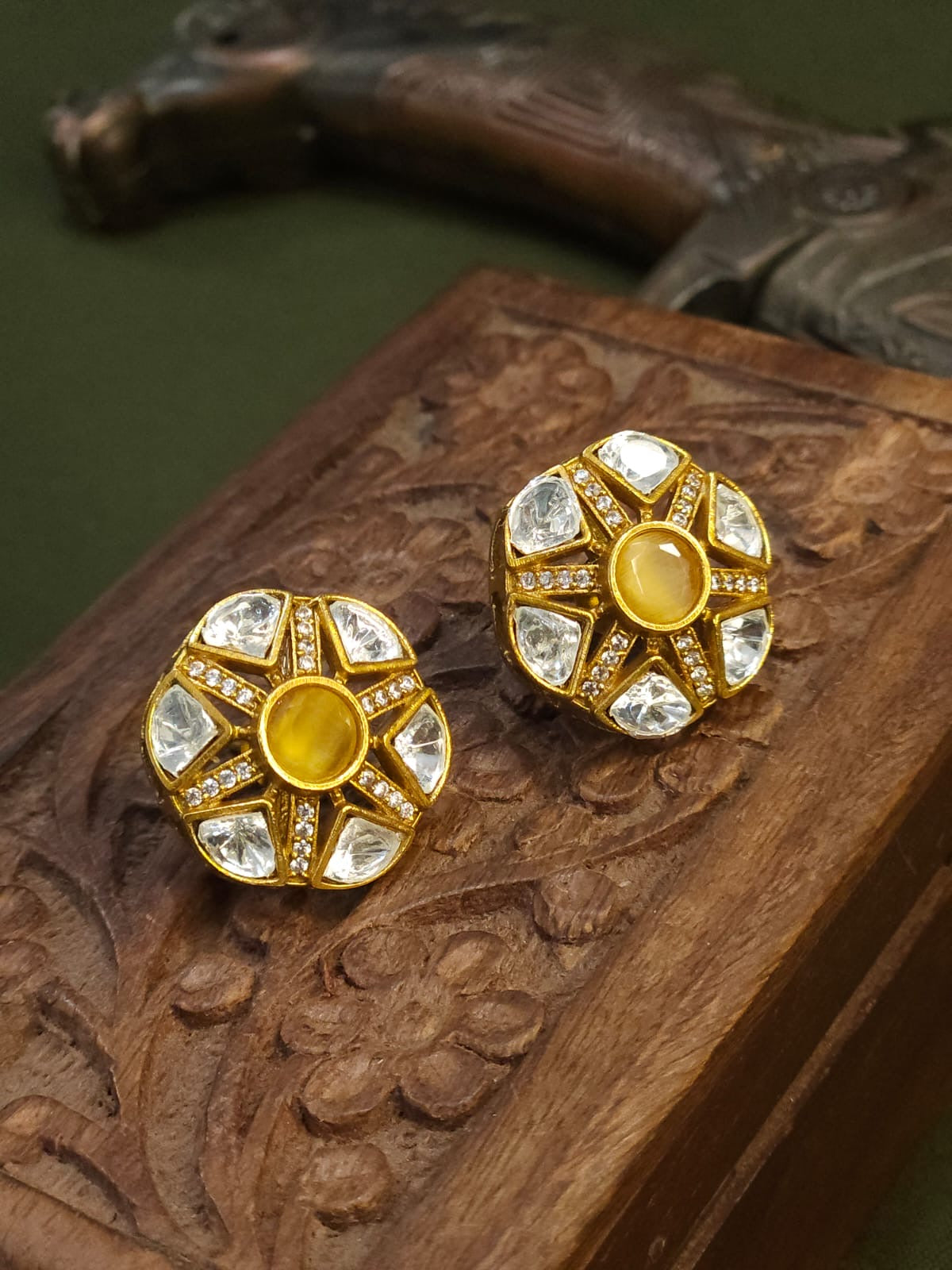 POLKI STUD- MUSTARD